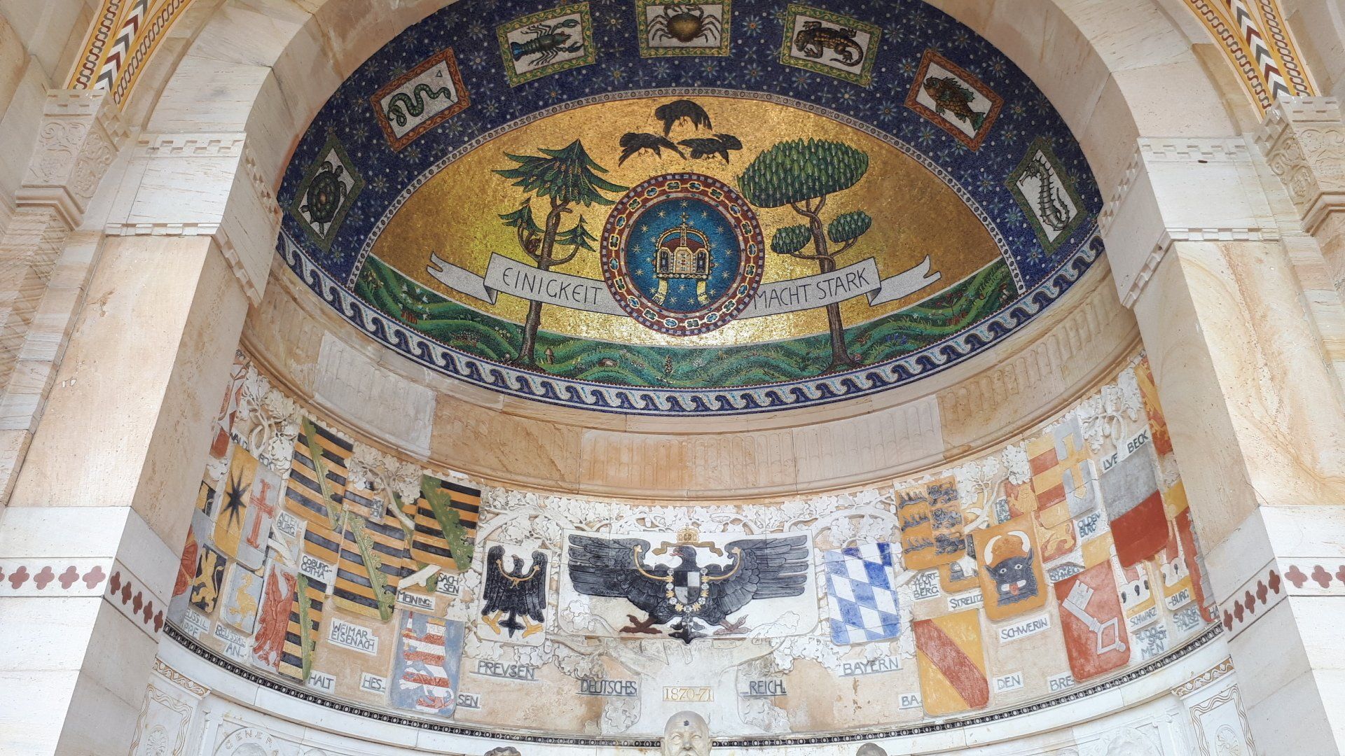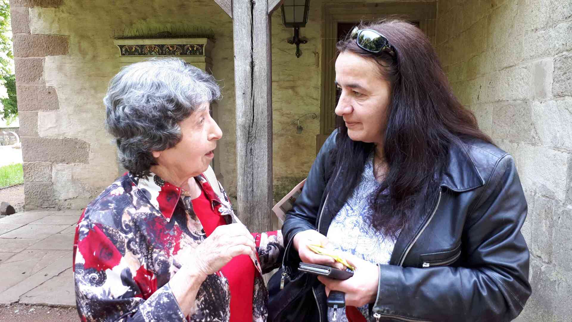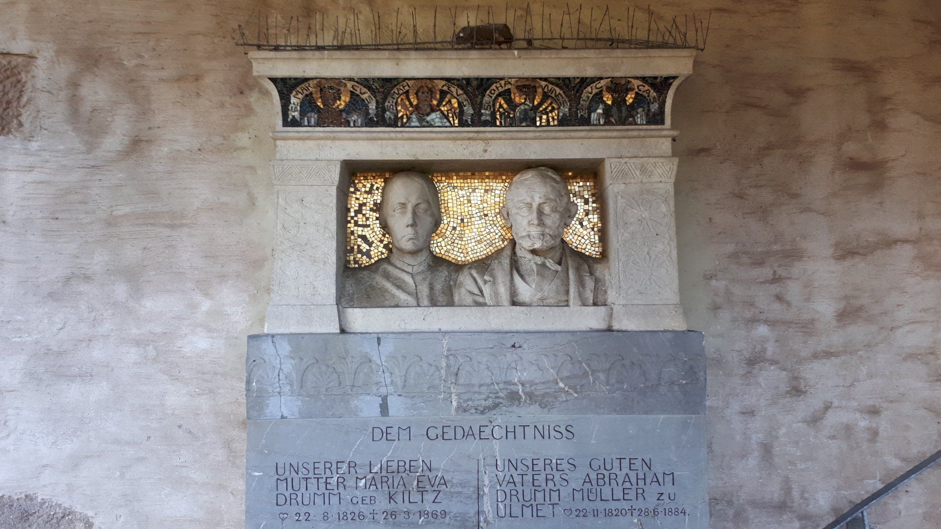 Betty Griffin from North Carolina is a descendant of a pioneer settler in Catawaba County - Johann Drum, born 1725 in the Palatinate, supposingly in the Glan river valley near the town of Ulmet. I had the pleasure to travel with Betty and her husband Joe as early as 2009 when she brought a group and again with another group in 2018. Now they came as small family with Deb Drum Davidson and Bob Howard Drum. Of course the Drums ancestral church and visits to Drum farms in Ulmet and in Zweibrücken in the Saarland were on our itinerary. And two famous Drums: George Drum form Erdesbach, one of the 19th century Palatine traveling musicians who as an immigrant band leader who became famous as composer of the ceremonial march "Hail to the Chief", and Johann Drum, sculpture and artist from Ulmet. The tour started in Frankfurt where Bob was stationed at the Frankfurt US troops headquarter - once Art Deco office complex of IG Farben chemical industries, today part of the University of Frankfurt - and ended at Munich.